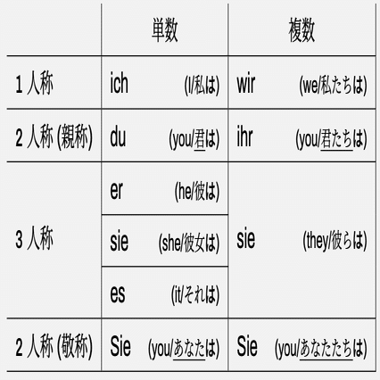 (以降2人称敬称単数・複数のSieは3人称複数に含め「sie(Sie)」と表記します。) -