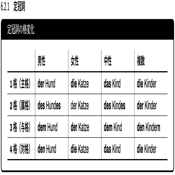 ドイツ語では名詞に付く冠詞が格によって変化します。