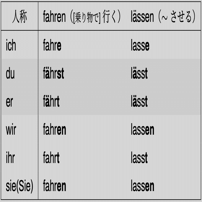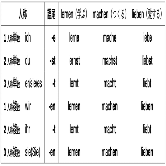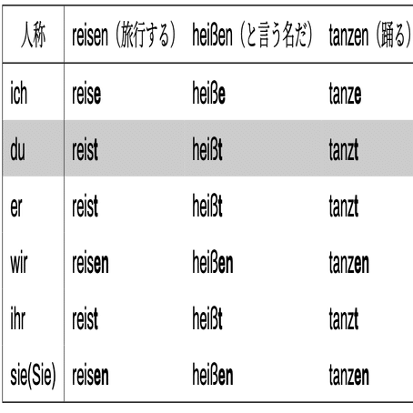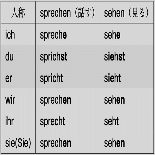 ドイツ語では,動詞の形が主語に応じてが変化(=人称変化)します。