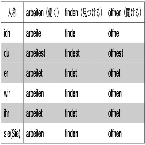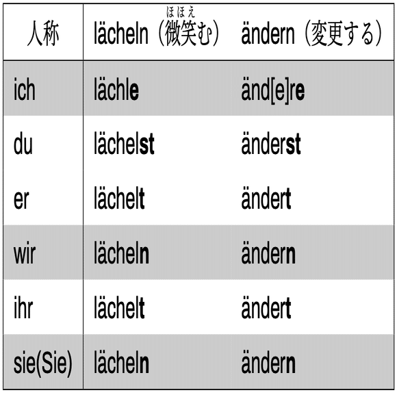 3 人称のer/sie/es は活用変化が全て同じとなる。(英語のhe/she/itの関係と同様) (以降3人称はerのみ表記します。)