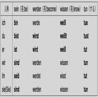 sein,werden,wissen,tun の現在人称変化(完全に例外)